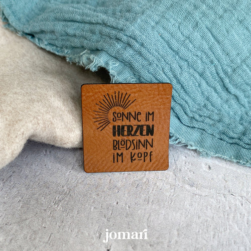 Kunstlederlabel - Sonne im Herzen, Blödsinn im Kopf