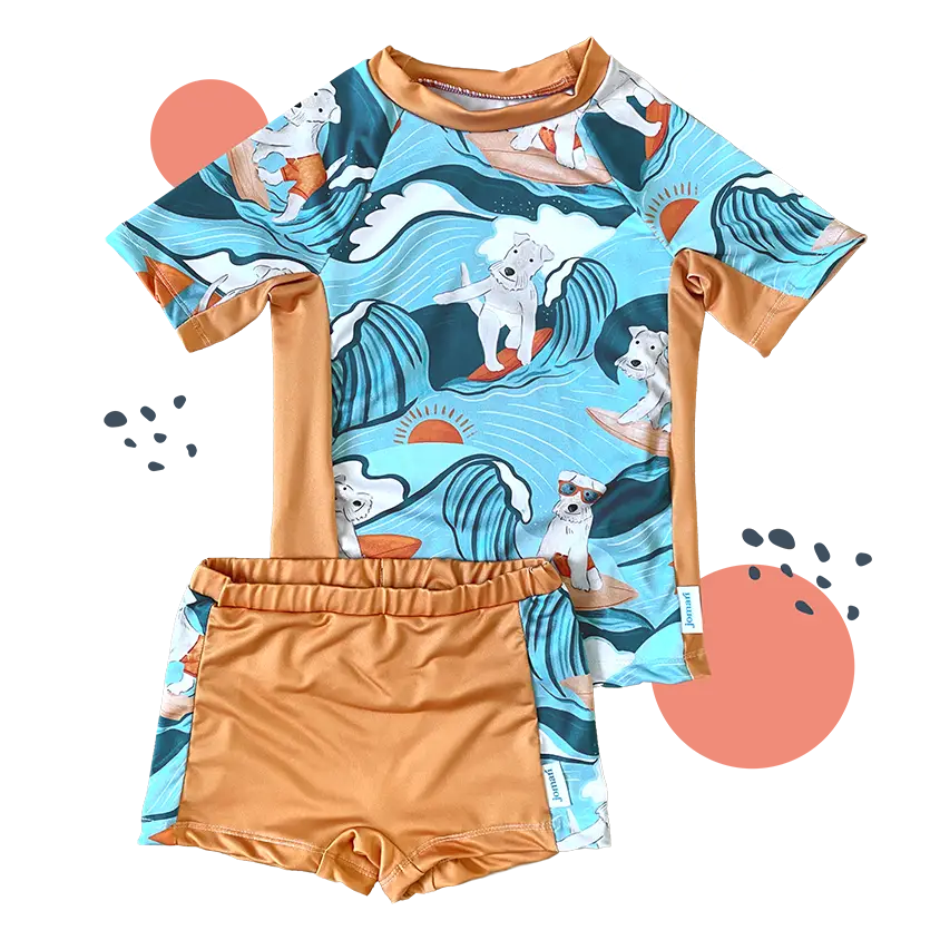 Shirt und Shorts aus Sport Lycra mit UPF-Schutz.